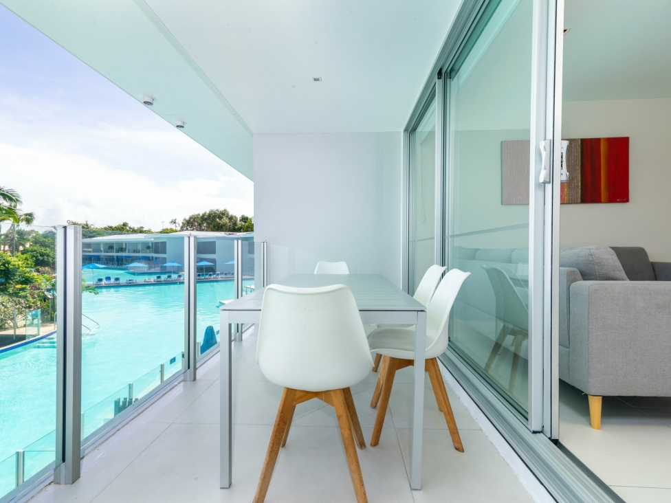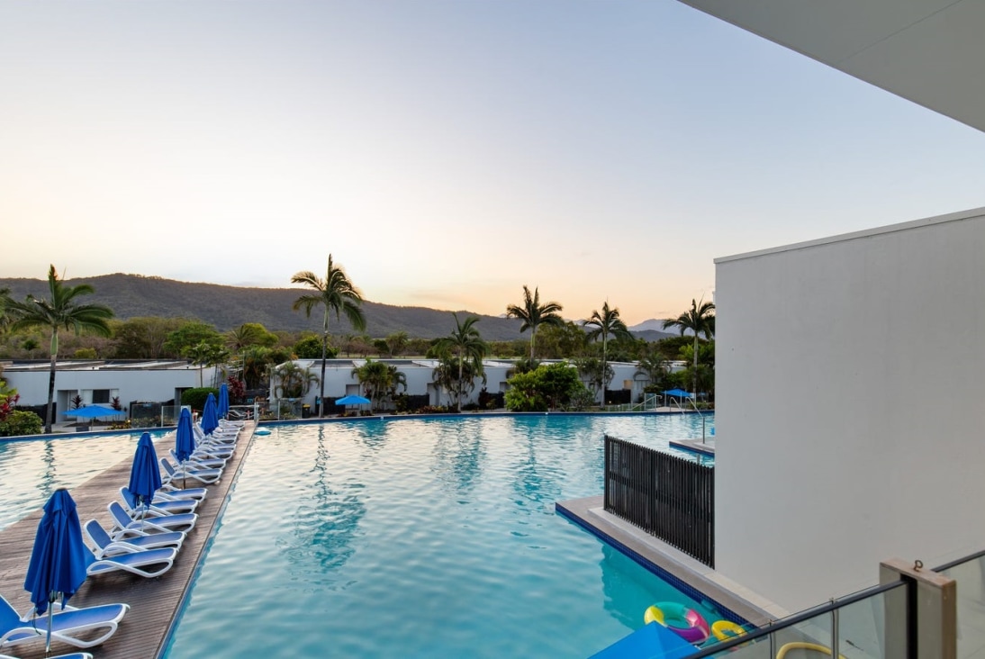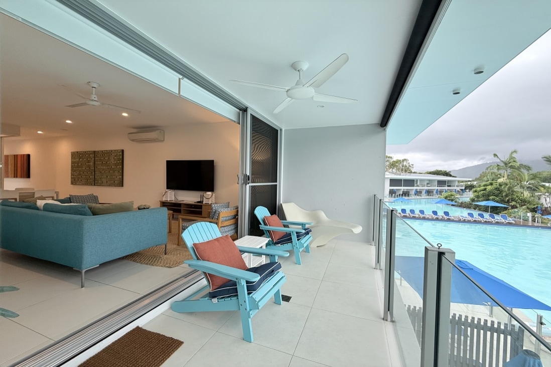 Located upstairs on the first floor overlooking the neighbouring golf course and surrounding mountains. Modern two bedrooms, one bathroom apartments come with fully equipped kitchens, laundry facilities, and air conditioning.